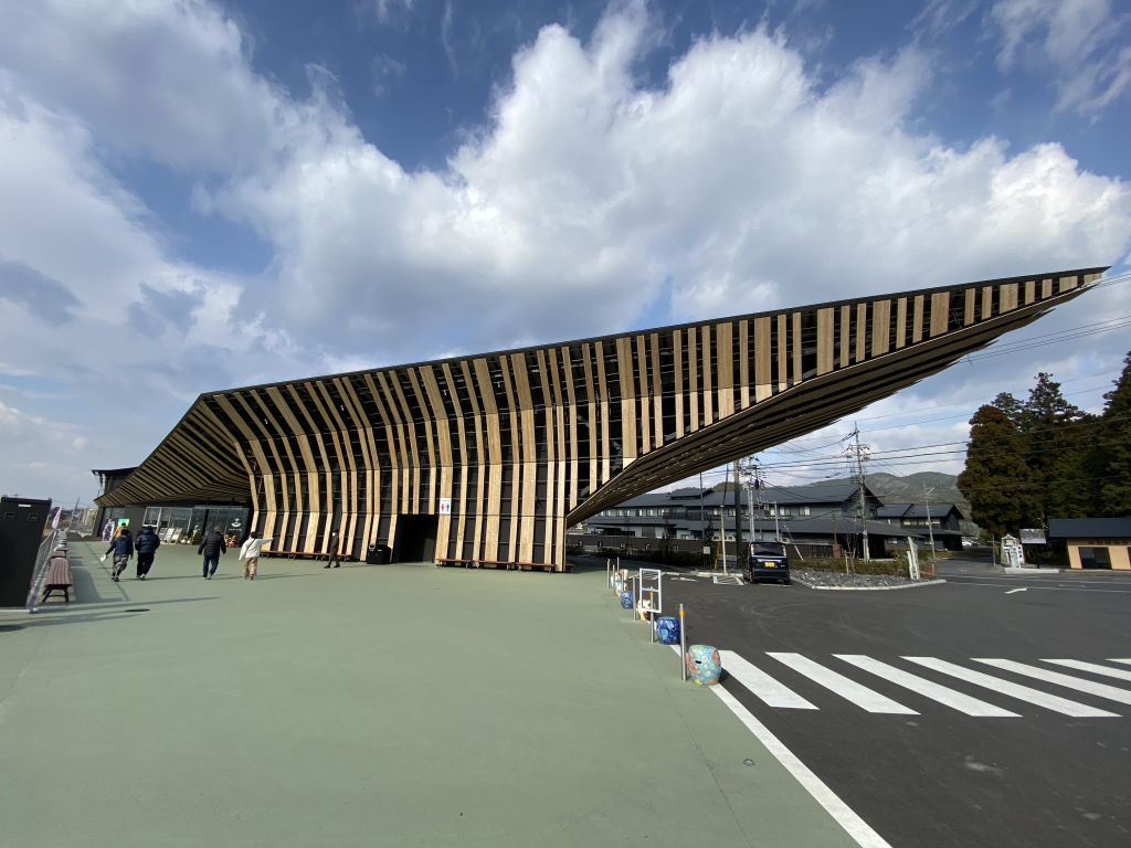 とても目立つ変わった形の建物は、隈研吾氏による設計とのことです。