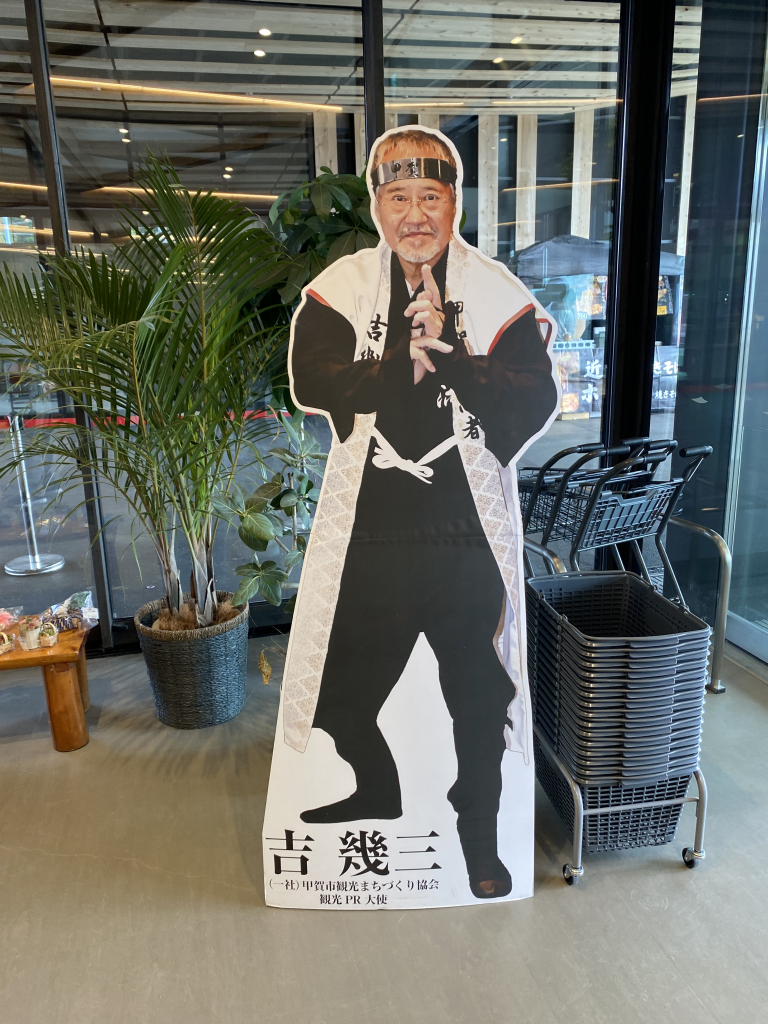 甲賀市観光まちづくり協会 観光PR大使の吉幾三さんも、印を結んでお出迎え。